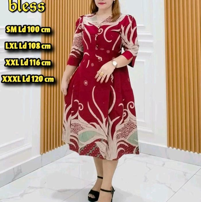 DRES BATIK LAPIS TRICOT KANCING HIDUP KONDANGAN - PINK, S/M