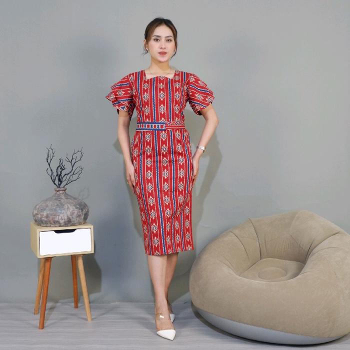 BATIK SOLO TRENDY - DRESS BATIK FRANSISKA DENGAN BAHAN KATUN PREMIUM DAN SUDAH LAPIS FURING - S