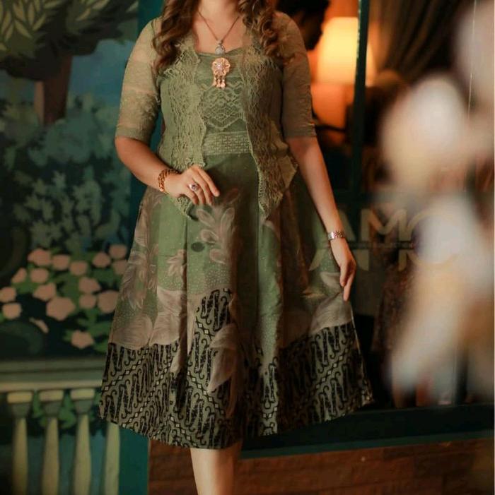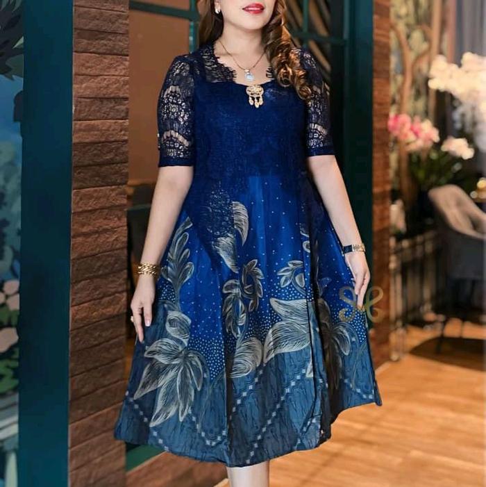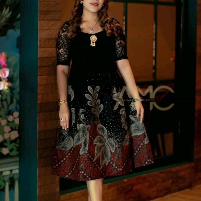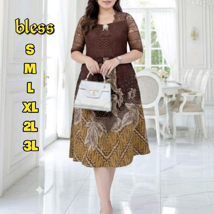 DRESS BATIK KATUN TERBARU MIX BROKAT TERBARU - COKLAT, S