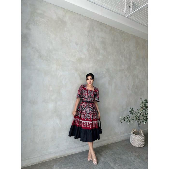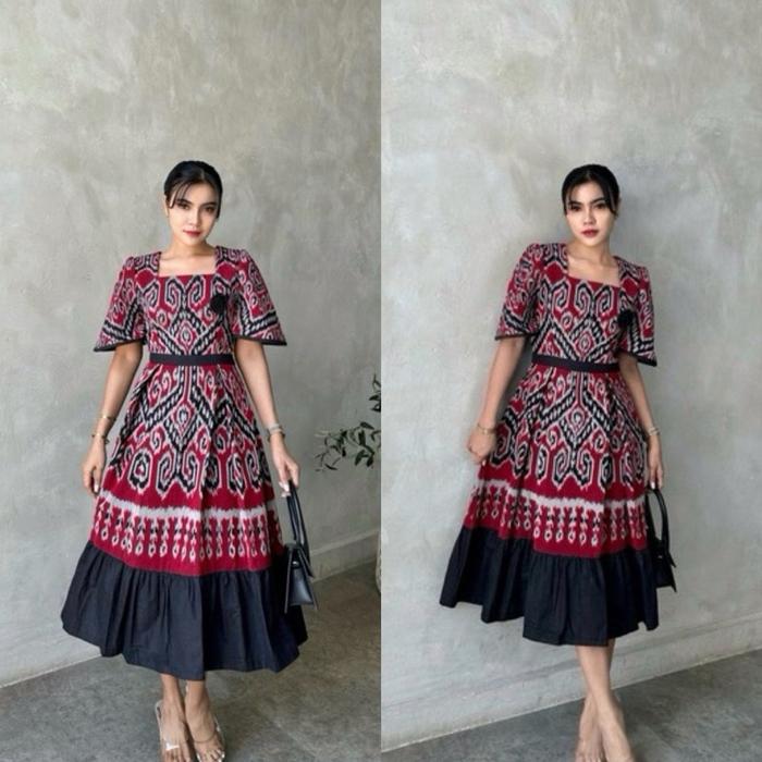 LUMMY DRESS TENUN - DRESS TENUN TERBARU BAJU CASUAL PANJANG WANITA GAUN PESTA BATIK OUTER - DRESS, S