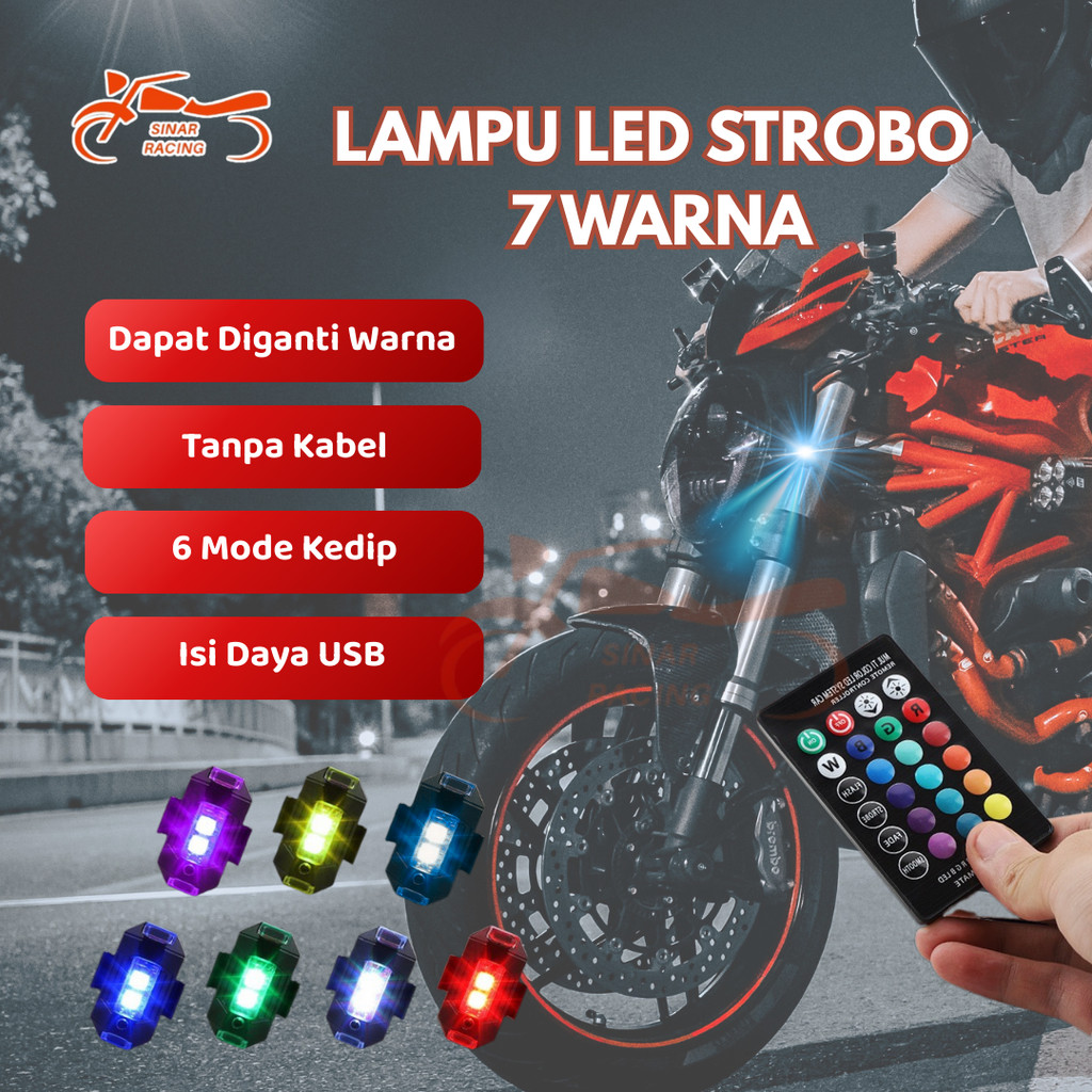Sinar Rng Lampu Strobo Pesawat RGB 7 Warna Super Terang LED Kedip Mode Banyak Motor Mobil IP68