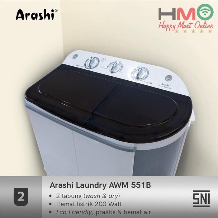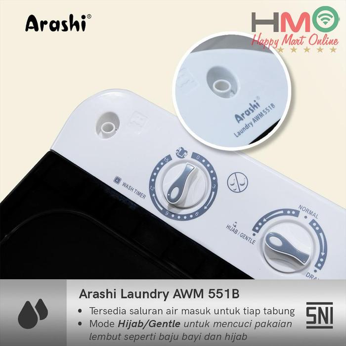 Arashi Mesin Cuci 2 Tabung Laundry Portable Bukaan Atas 5.5 KG AWM-551B AWM 551 B