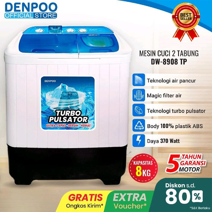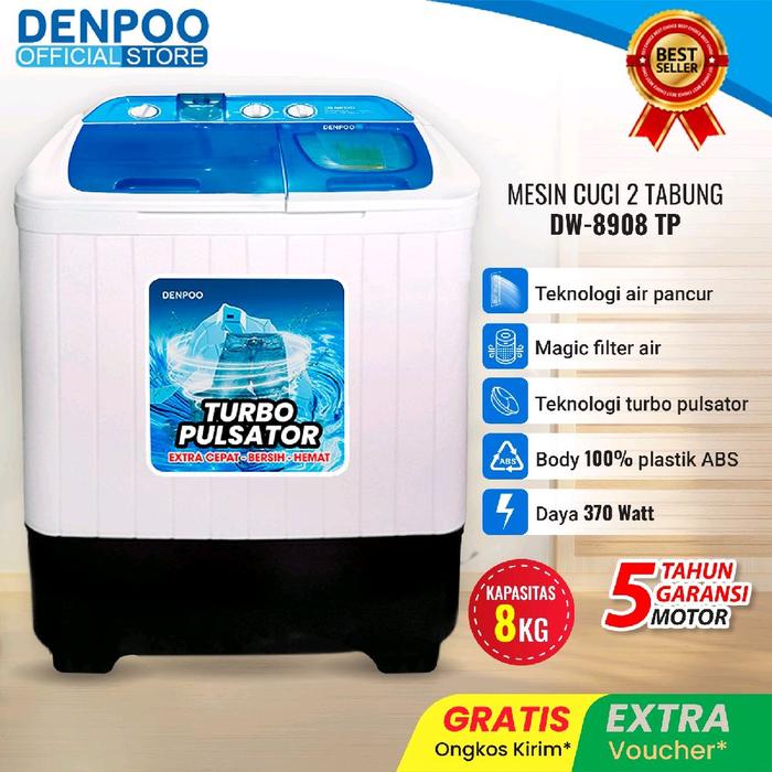 Denpoo Mesin Cuci 2 Tabung DW 8908 TURBO FULSATOR- 8 KG