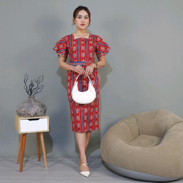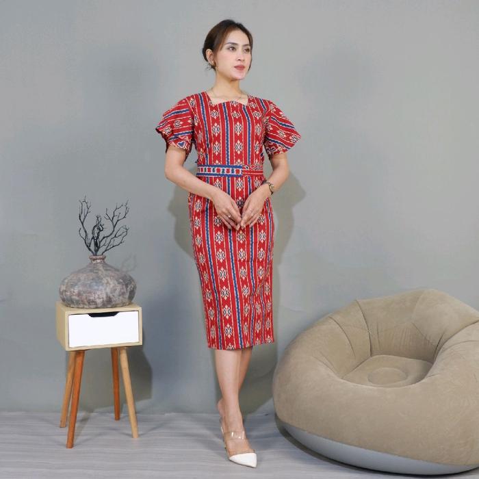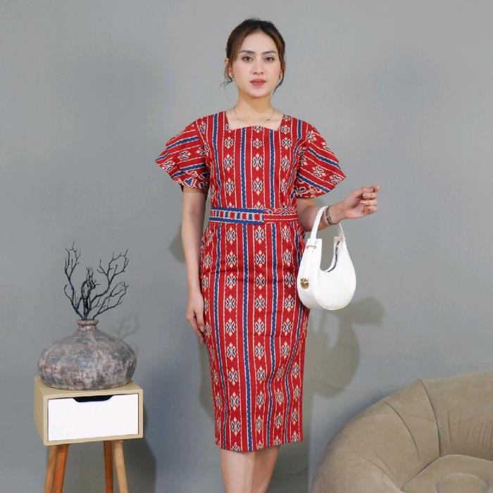 BATIK SOLO TRENDY - DRESS BATIK FRANSISKA DENGAN BAHAN KATUN PREMIUM DAN SUDAH LAPIS FURING - S