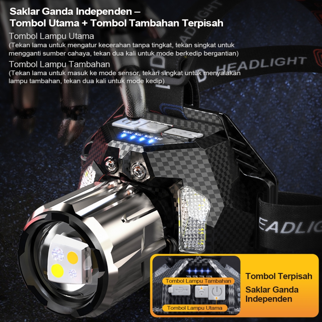 PROMO JVJH Senter Kepala Super Terang 5 Cahaya LED Laser Multifungsi Mini Headlamp Lampu kepala Luar
