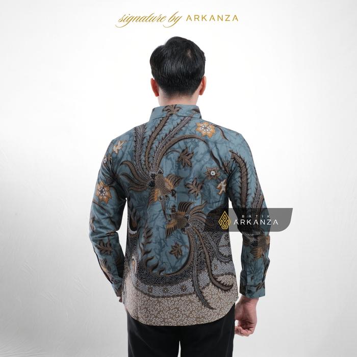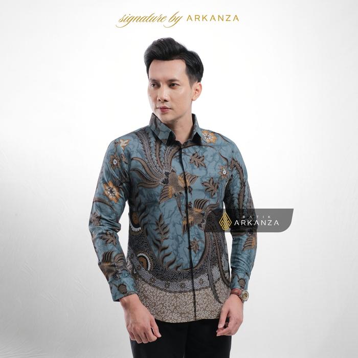ARKANZA SIGNATURE MOTIF MANYURA KEMEJA BATIK PRIA LENGAN PANJANG EKSKLUSIF CURVED HEM JAHITAN PRESISI HIDDEN & EMBOSS BUTTON LAPISAN TRICOT BREATHABLE PRM - PANJANG, S