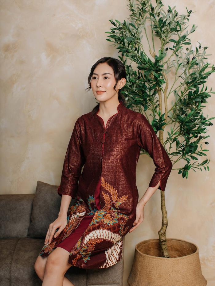 ADYATMA ADHIWANGSA MAROON DRESS BATIK WANITA KATUN FOIL - S