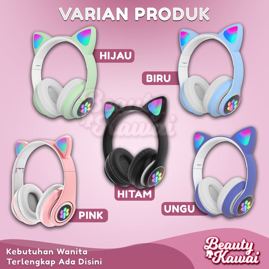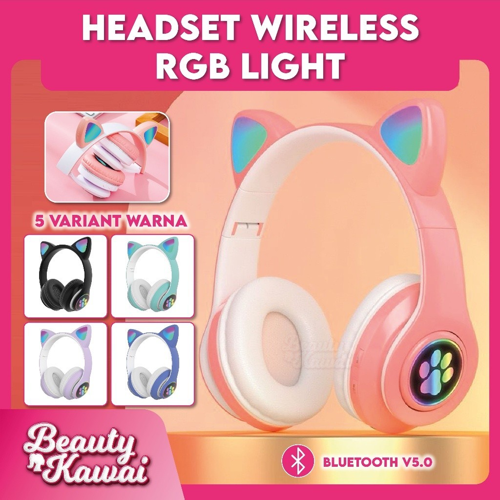Headset Kucing LED TWS Bluetooth 5.0 Headphone Extra Bass
