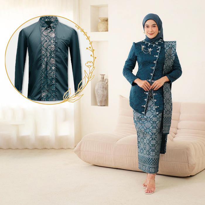 AHZEM BATIK - KEBAYA COUPLE AYU JANGGAN BROKAT TULLE PAYET WARNA EMERALD GREEN SETELAN ROK MOTIF SONGKET BAJU WISUDA KONDANGAN LAMARAN JENG YAH TERBARU KEKINIAN - EMERALD GREEN, SET KEBAYA + KEMEJA M