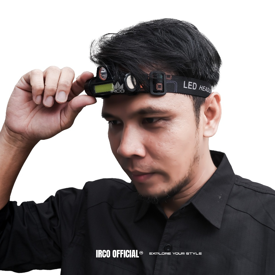 PROMO IRCO Headlamp Outdoor Waterproof Charger Free Kabel USB Senter Kepala Anti Air Led Super Terang