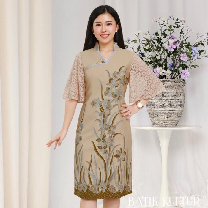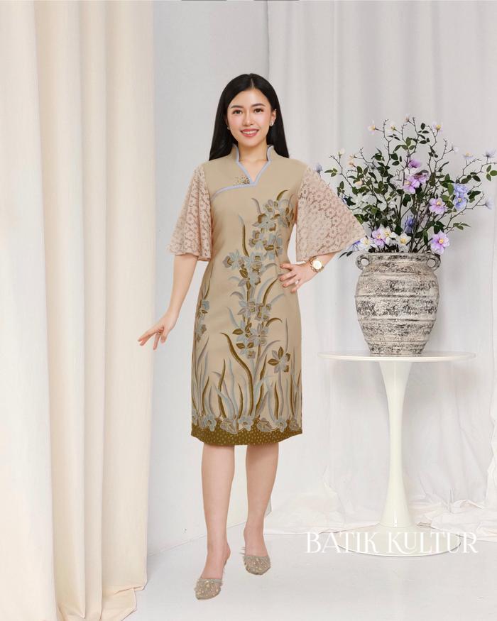 BATIK KULTUR DRESS - HBLD - FIREWEED PASTEL IN KHAKI BROWN - XS