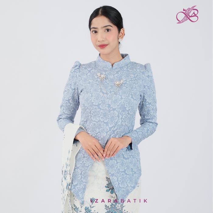 IZARABATIK - KARTIKA SERIES JAGUARD FUKURO PREMIUM FREE BROSS CANTIK SET KEBAYA BATIK MODERN COUPLE WISUDA LAMARAN TUNANGAN KONDANGAN BRIDESMAID - SET KBY DENIM SAKURA, S