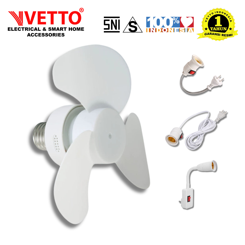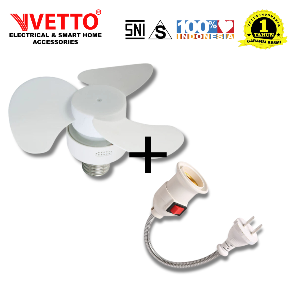 FLASH SALE VETTO Fitting Lampu E27 Colok Kabel Fleksibel Switch On Off Fitting Kipas Angin Mini