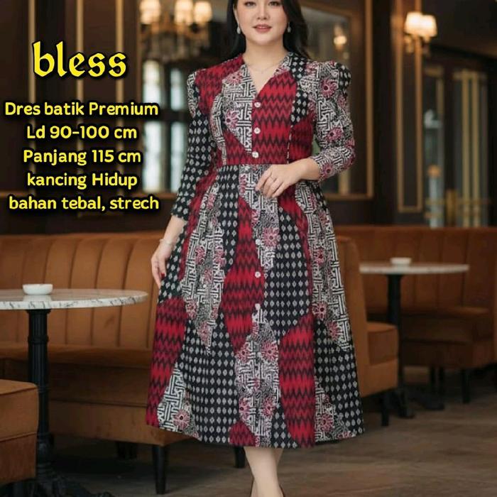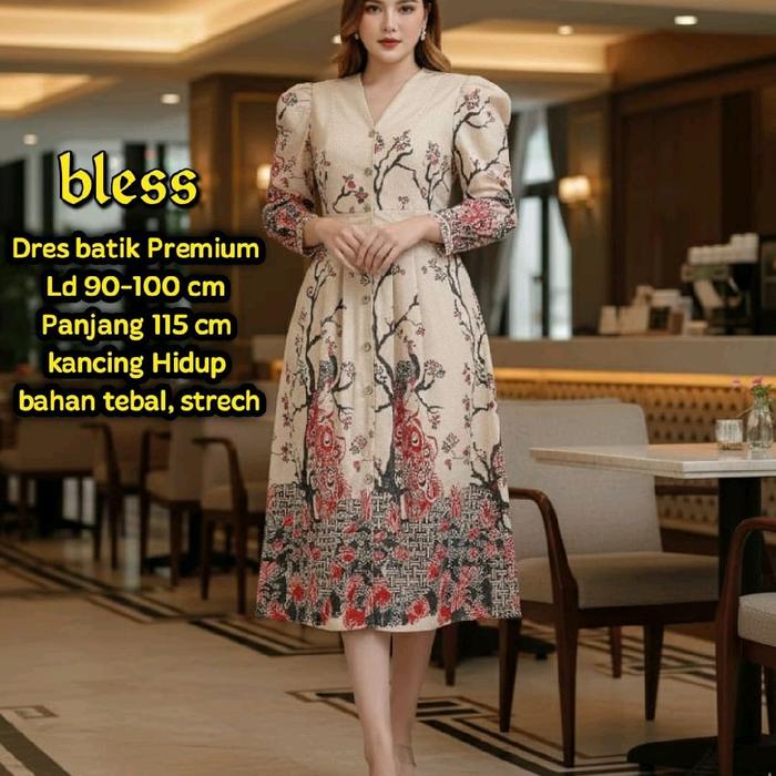 GAUN BATIK TEBAL DAN STRECH ,UNTUK ACARA FORMAL DAN NON FORMAL - CREAM, LD 95-100