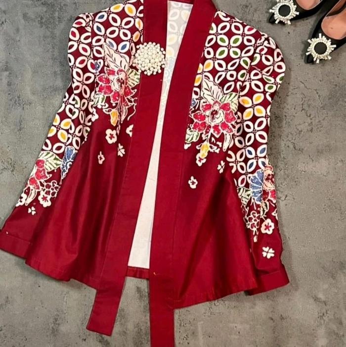 OUTER BATIK WARNA MERAH SUPER MEWAH PREMIUM - OUTER BATIK MERAH, S