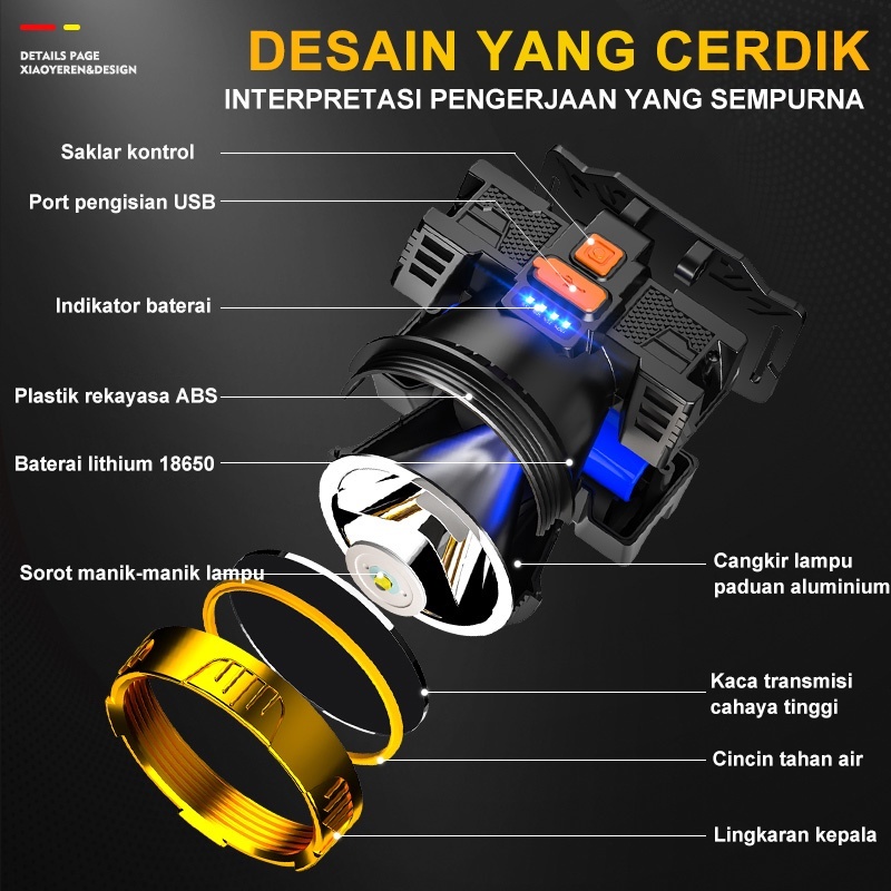 PROMO TAGCORE Senter KepalaTERANG BATERAI LITHIUM Headlamp Berkemahled Senter Berkemah HeadlampOutdoor LED Senter KepalaSuper