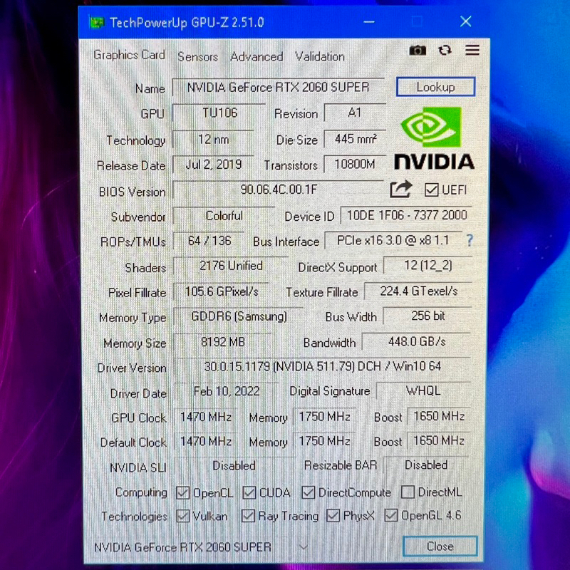[Star] VGA RTX 2060 SUPER 8GB COLORFUL BATTLEAX GDDR6 (LIKE NEW) ORIGINAL