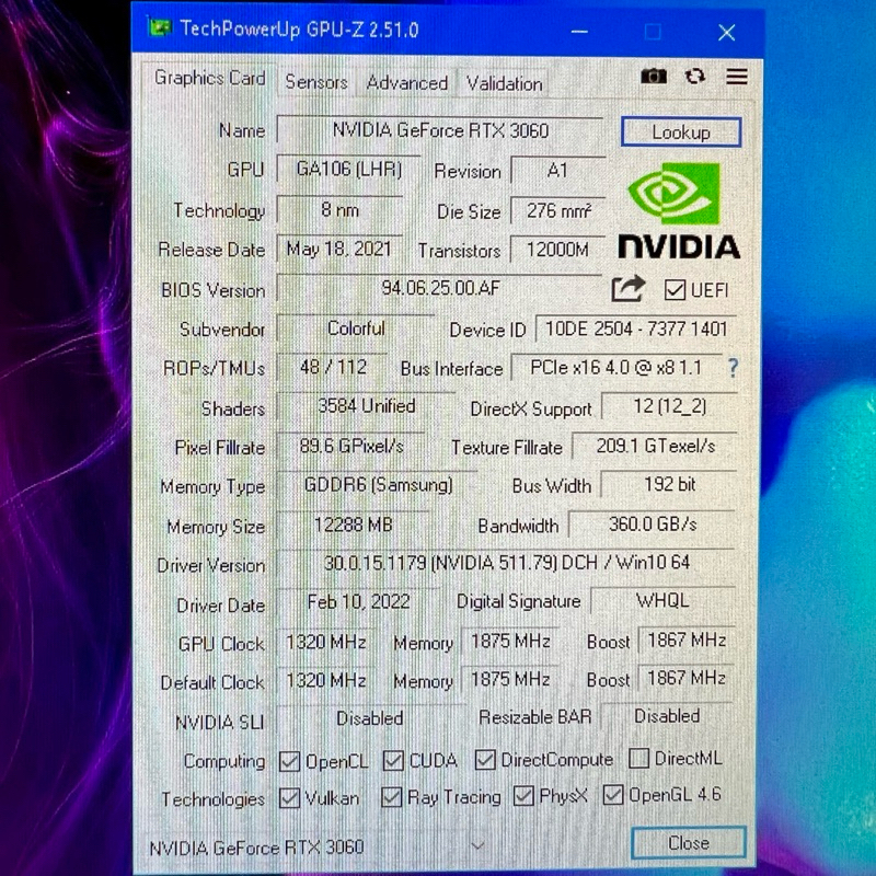 [Star] VGA RTX 3060 12GB COLORFUL ADVANCED OC GDDR6 (LIKE NEW) ORIGINAL