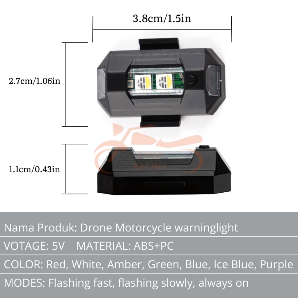Sinar Rng Paket 2 Lampu + 1 Remote Lampu LED Pesawat Kedip RGB 7 Warna Super Terang USB Motor Mobil IP68
