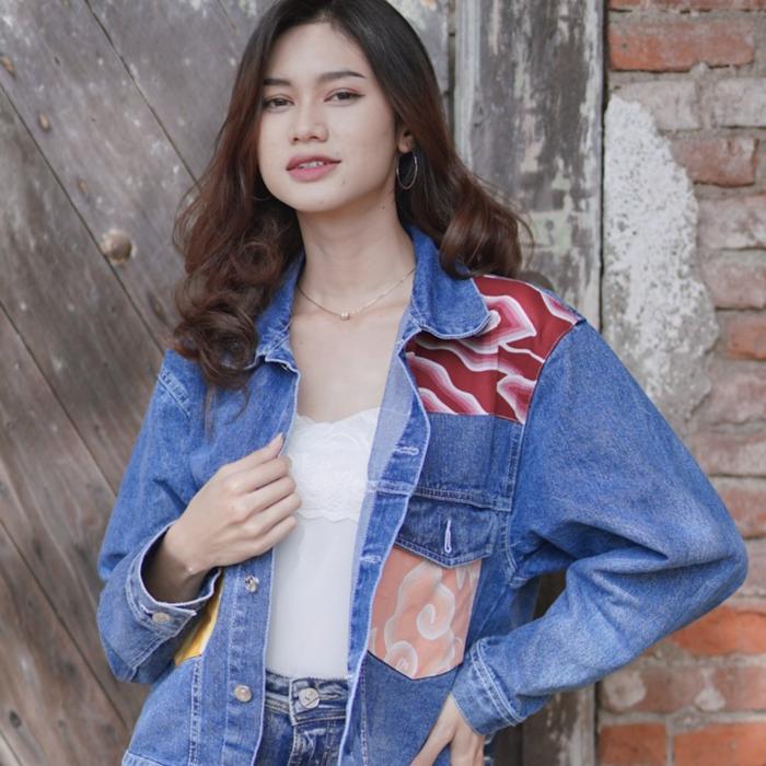 BATIK TRUSMI ATASAN WANITA JAKET BATIK JEANS DENIM RML