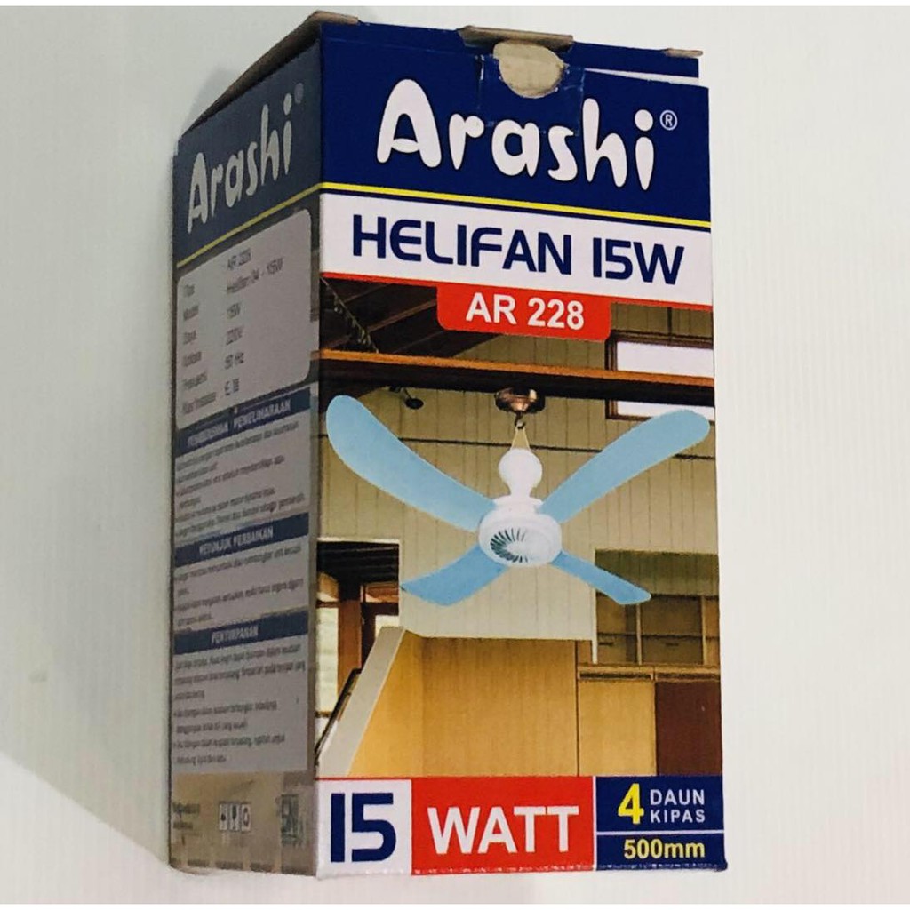 Arashi Helifan Kipas Angin Gantung 15 Watt 4 Baling-Baling Kipas Small 40 CM