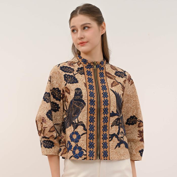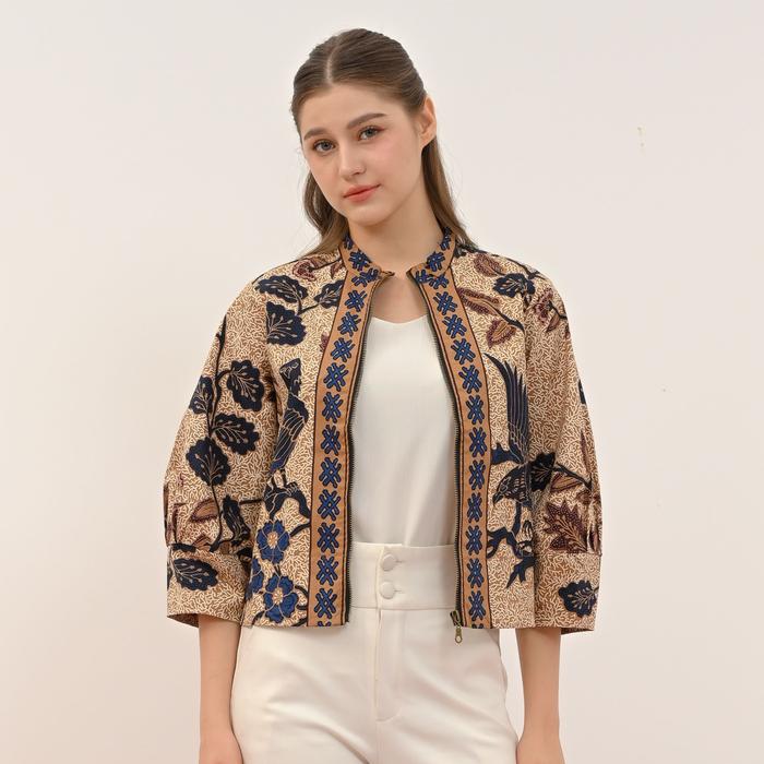 JAKET BOMBER / OUTER LUARAN BATIK WANITA / 135 UPH NAVY - STANDAR