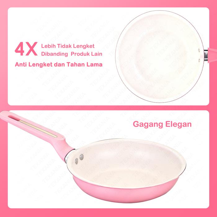 [EXCLUSIVE BABYOLIV] TEXANIA SET Panci Soup dan Frypan PINK Anti Lengket 20cm Multifungsi Mudah