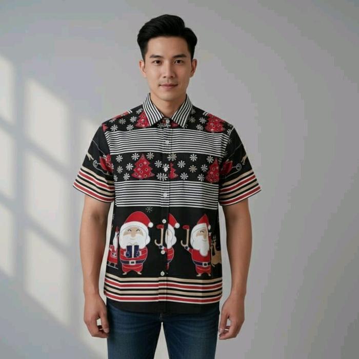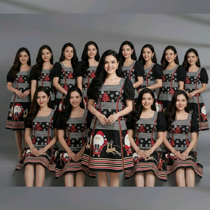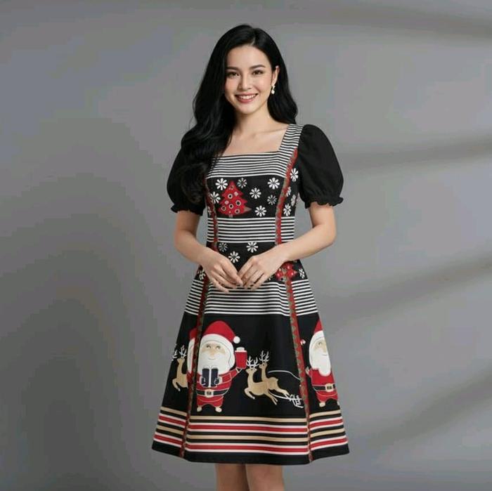 DRESS BATIK MOTIF SANTA - DRESS NATAL - DRESS BATIK - DRESS D3W4SA HITAM, S