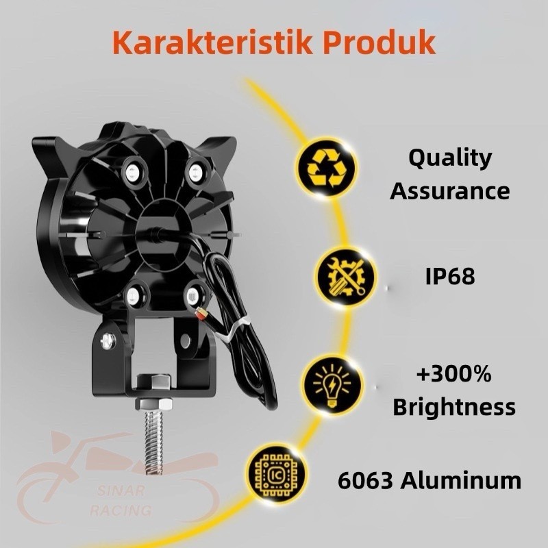 Sinar Rng Lampu Sorot Owl LED 2 Mata 45W Laser IP68 Cahaya Putih Kuning 5000–6500K Untuk Motor & Mobil 100000 Jam