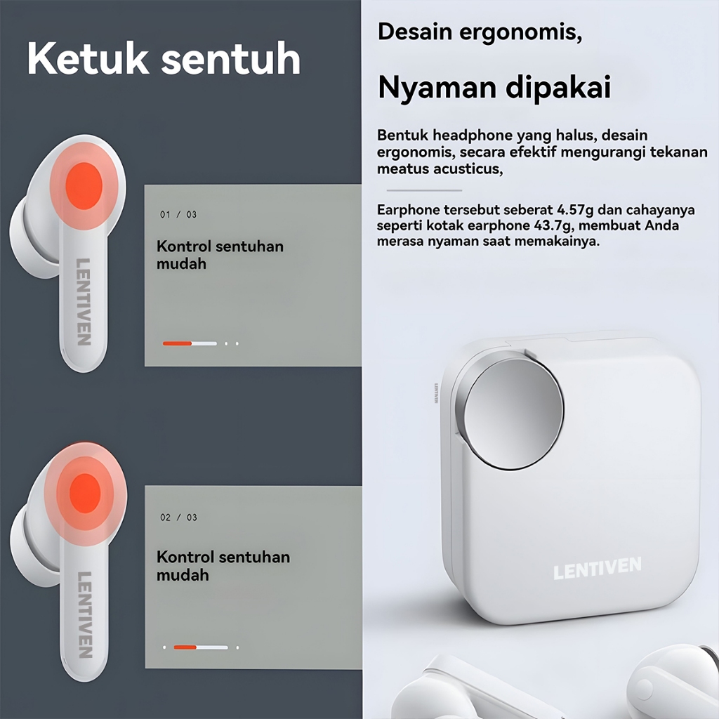 SALYS LENTIVEN Earbuds TWS Wireless EARPHONE BLUETOOTH Headset IPX4 BT 5.5 1 Tahun MF10