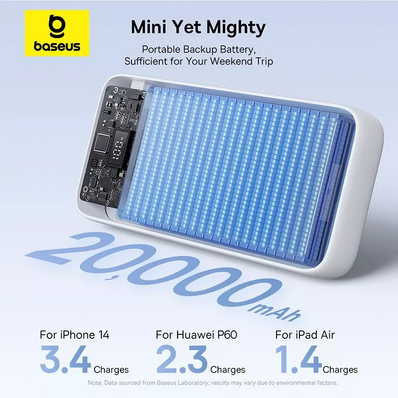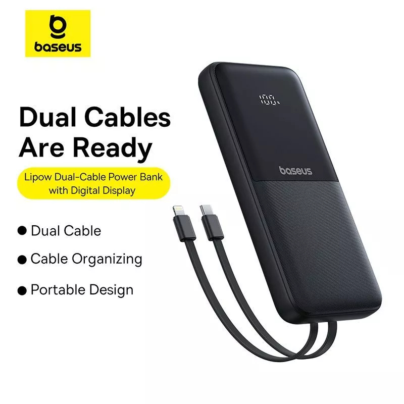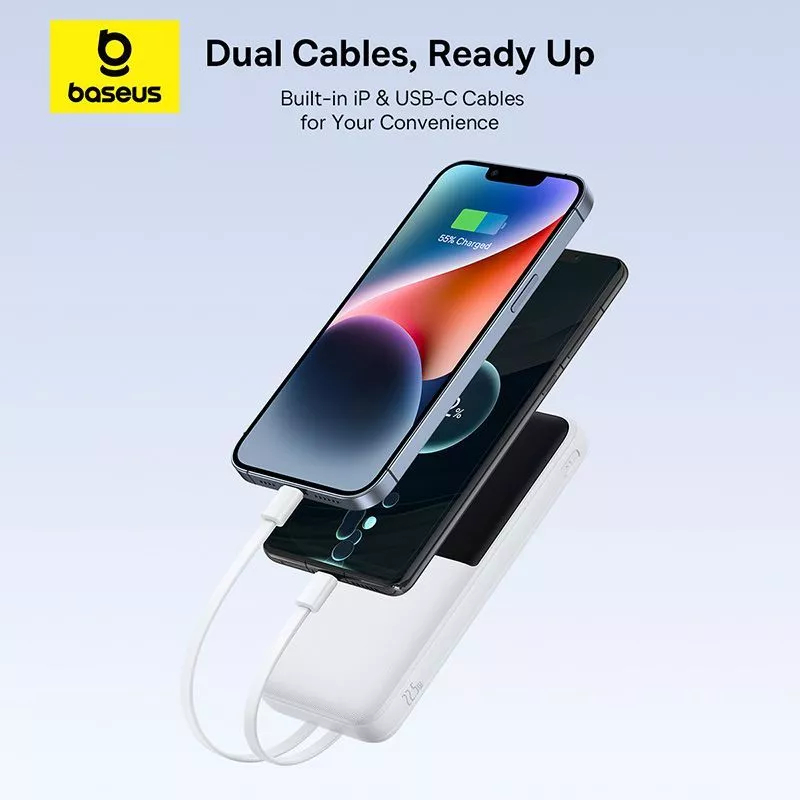 BASEUS Powerbank Lipow 10000mAh 20000mAh 22.5W Digital Display Fast Charging Built-in Cable Type-C & Iphone