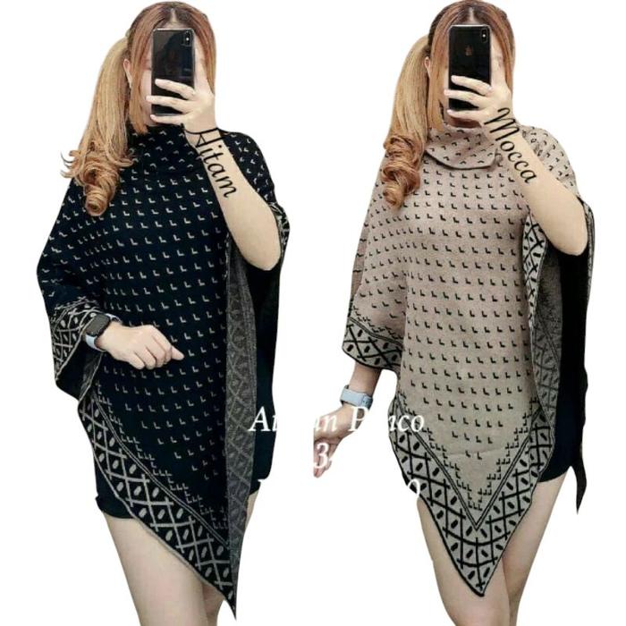 PONCO TANGAN KEIKO BUNGA KOTAK IMEL ETNIK BATIK BUNGA RAJUT HALUS PREMIUM MUSIM DINGIN SYAL SELENDANG - KEIKO TANGAN BLACK