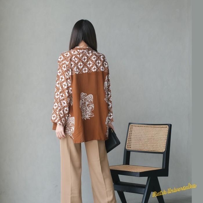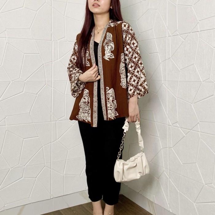 CARDIGAN OUTER BATIK CAP MODERN - KAWUNG MUSHROOM - COKLELAT MUDA