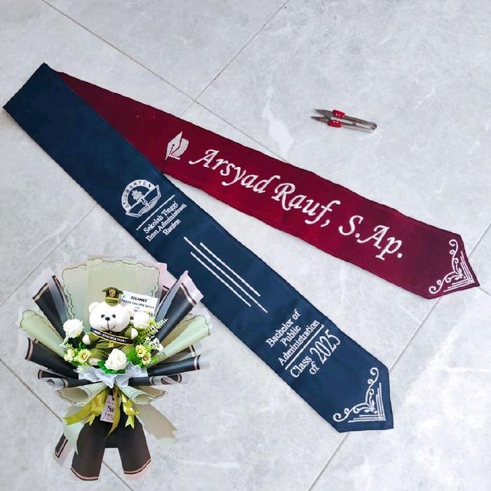 SELEMPANG WISUDA MOTIF BATIK VARIAN BOLAK BALIK SYAL BORDIR ELEGAN PREMIUM DENGAN PILIHAN KETEBALAN DAN DESAIN PERSONAL UNTUK ARSYAD RAUF S AP - TIGA GARIS DAN TOGA