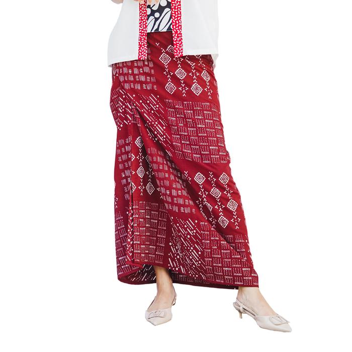 ROK LILIT BATIK WANITA - BHATARA BATIK BELANTARA SKIRT - ROK BATIK ETNIK MODERN - BAWAHAN BATIK - RED 5991, ONESIZE