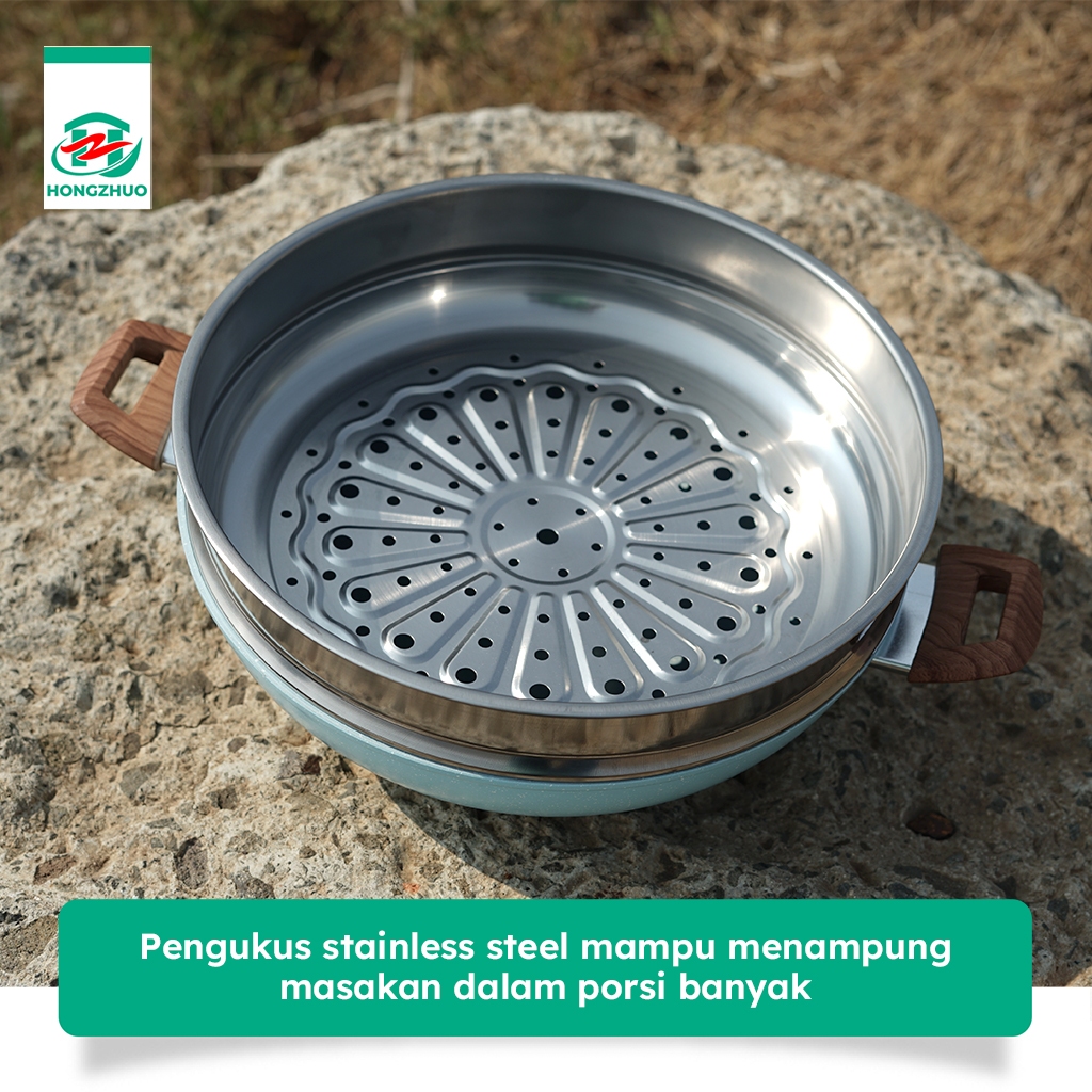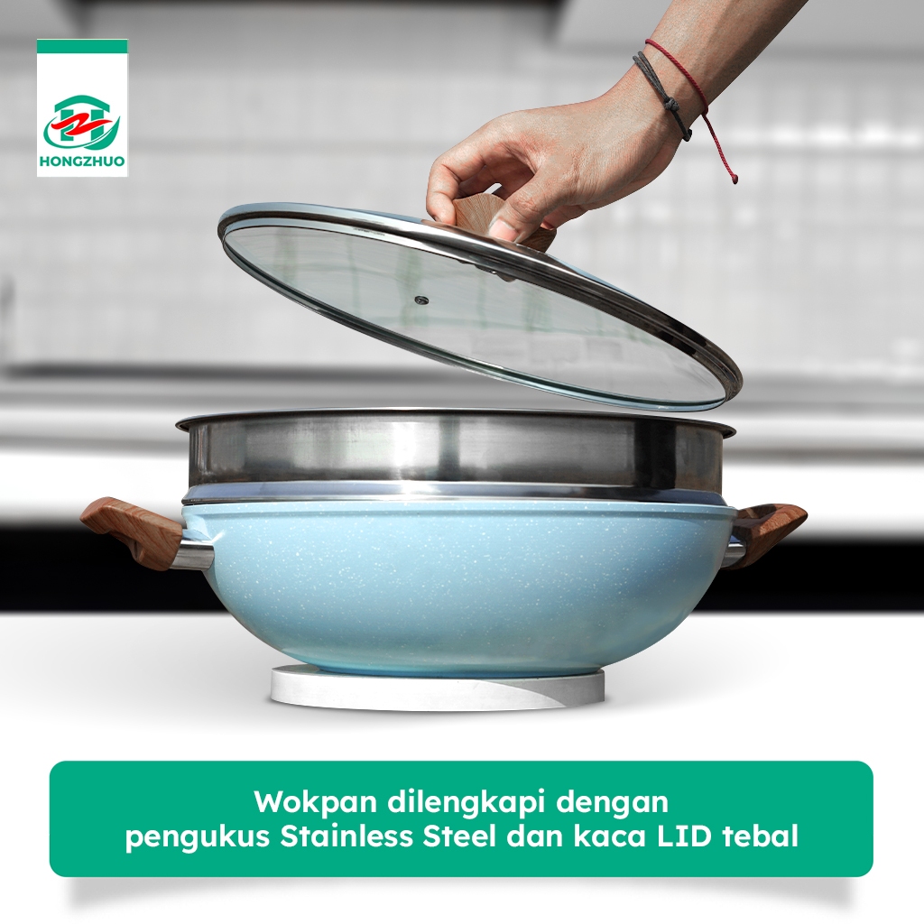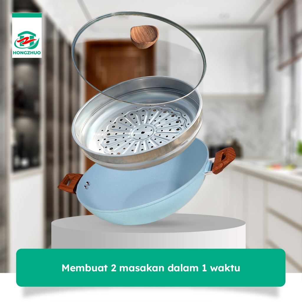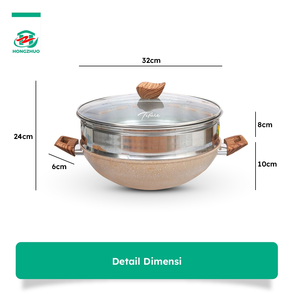 𝐏𝐑𝐎𝐌𝐎 Tifale By Hongzhuo [2IN1] Wokpan 32CM + Glass Lid + Granite Steamer Non Stick / Alat Masak Wok dengan Panci