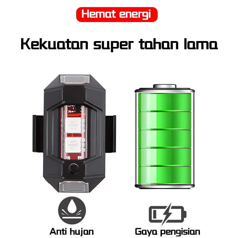 Lampu Led Kedip Pesawat Buat Motor Mode USB Aircraft Warning Tahan Hujan Anti Tabrakan 7 Warna Strobo Rechargeable