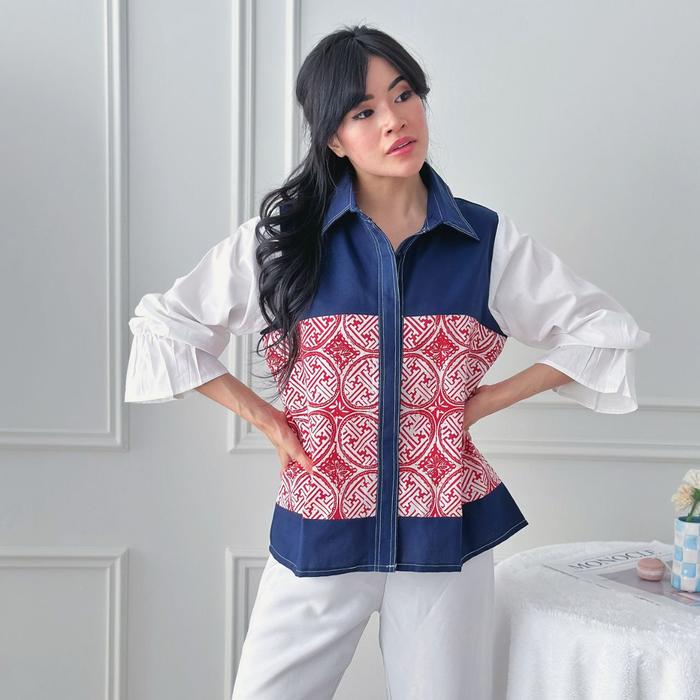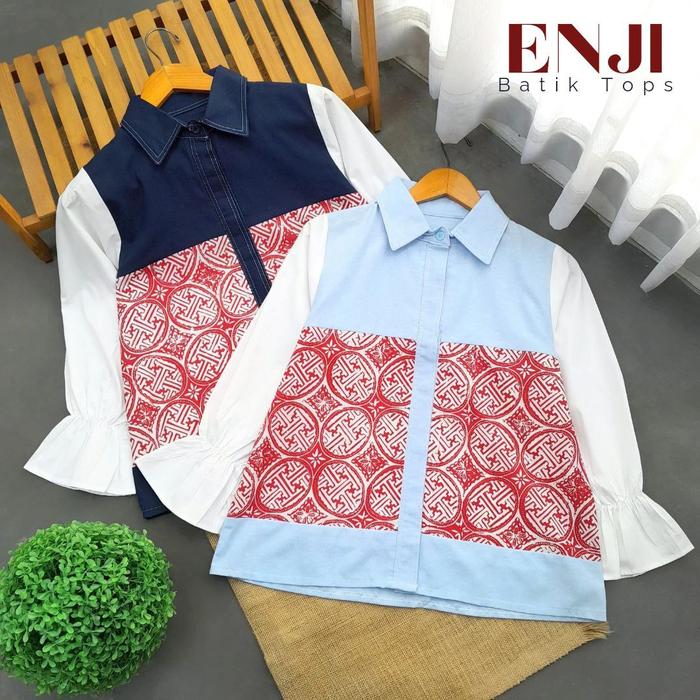 CALLIETAMAMI - A 6665 ENJI BATIK TOPS - NAVY, BIGSIZE