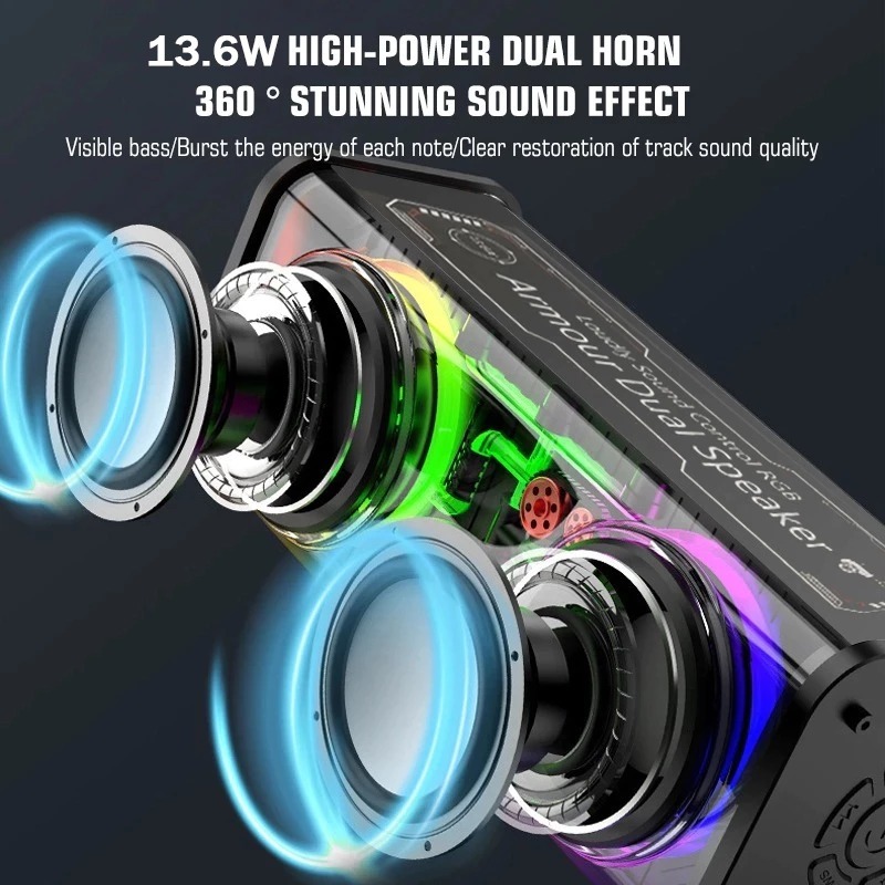 13.6W Bluetooth Speaker Double Subwoofer Music Speaker RGB LED Light Transparent Cyberpunk Speaker