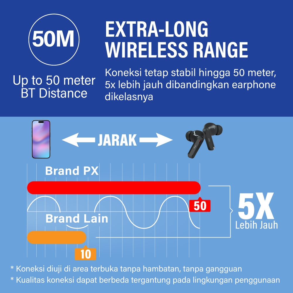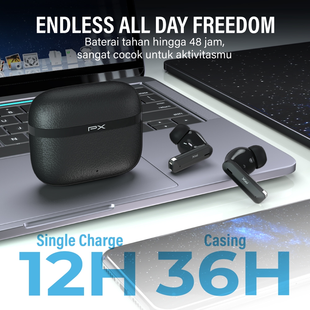 Earphone TWS PX Q80i Bluetooth 6.0 True Wireless ENC 4 Mic Black