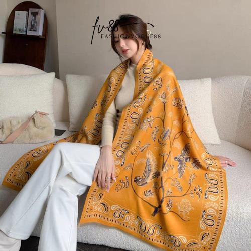 FV88 - SYAL LEHER BATIK KOREA SCARF WINTER IMPORT MERE PREMIUM MUSIM DINGIN UK 185X165CM - BATIK BULAT HIJAU
