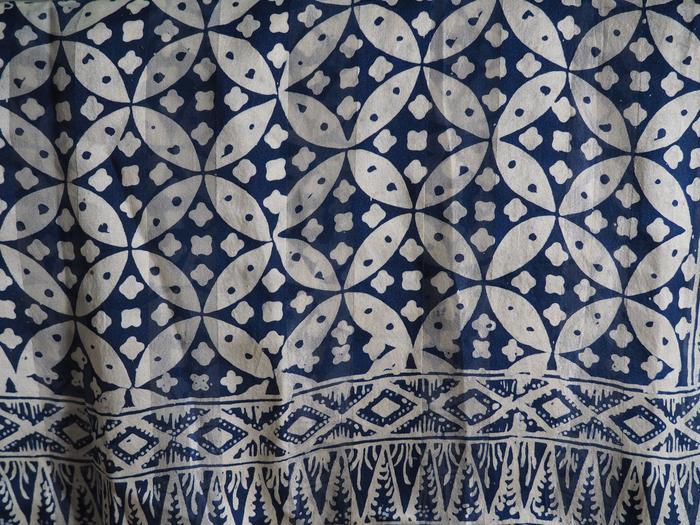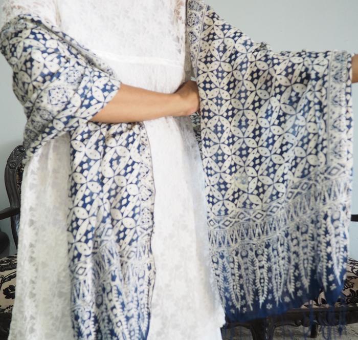 SELENDANG BATIK SUTRA SALUR KAWUNG BIRU - BTIK SILK SCARVE BLUE