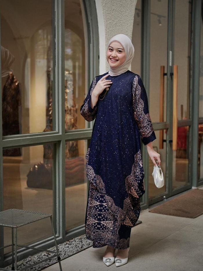 FREYA SET BAJU KURUNG MELAYU VISCOSE DAN ROK LILIT BATIK - NAVY