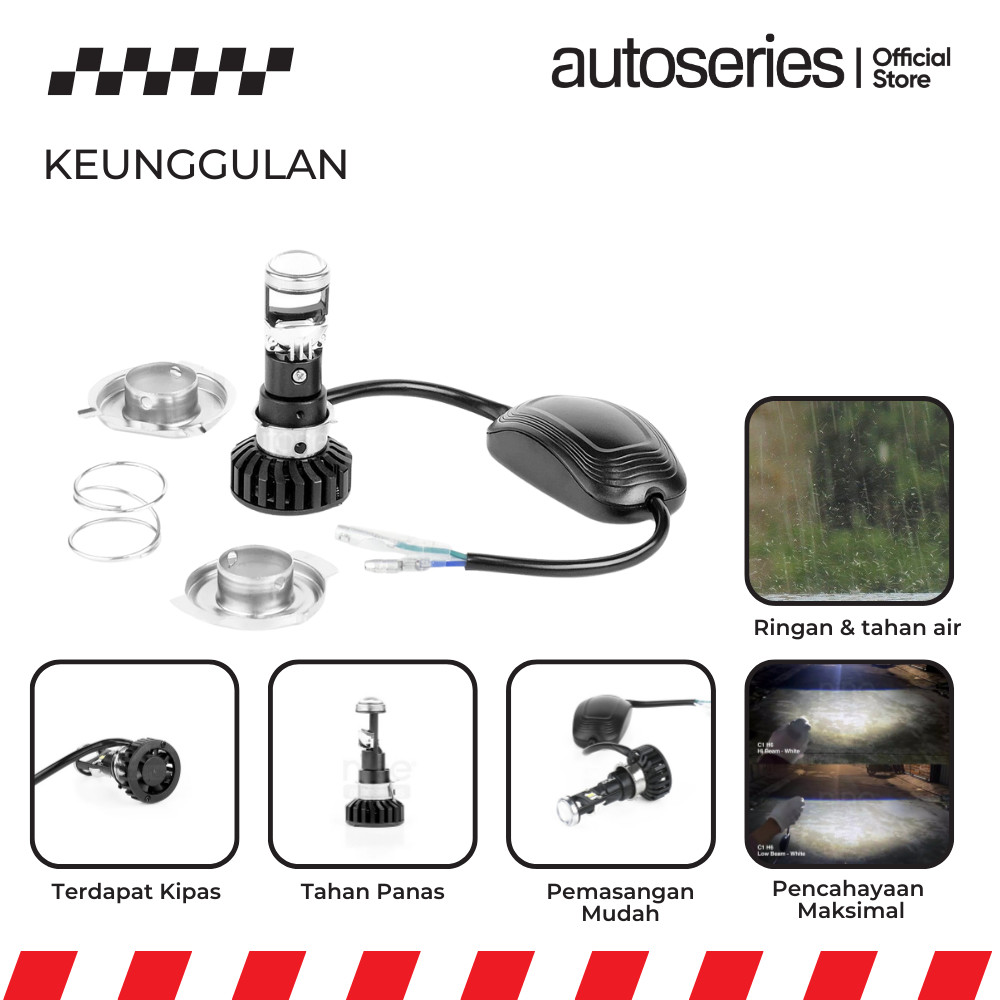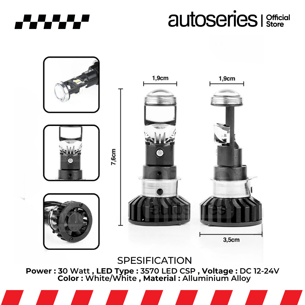 LUXIMOS Lampu Depan Laser 30W Mini Projector Biled Kipas Super Terang H6 H4 Motor C1 - AUTOSBY