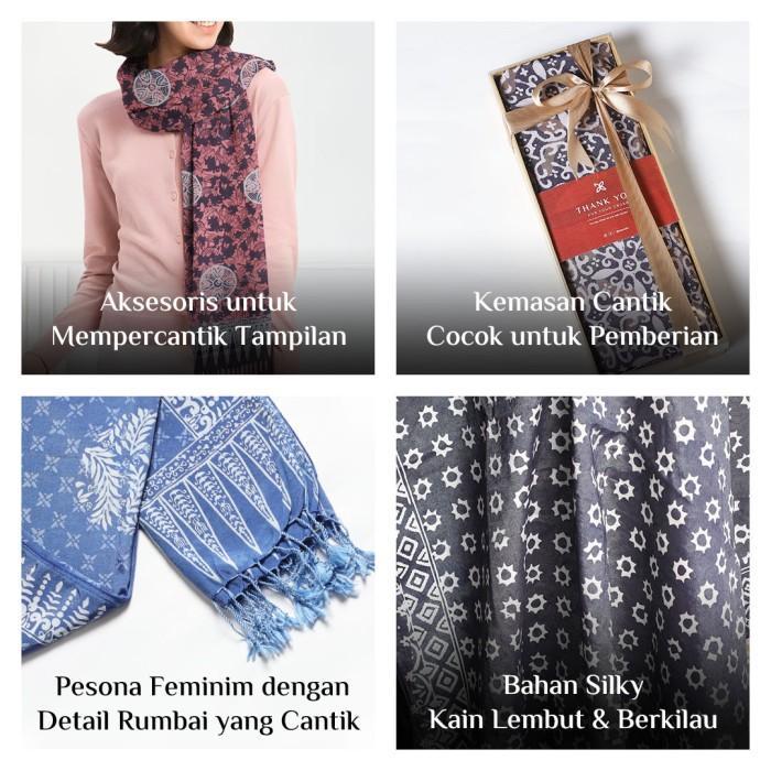 SELENDANG BATIK CAP/ PASHMINA BATIK/ SYAL BATIK CAP BAHAN SILKY-BIRU - SEKAR SENO