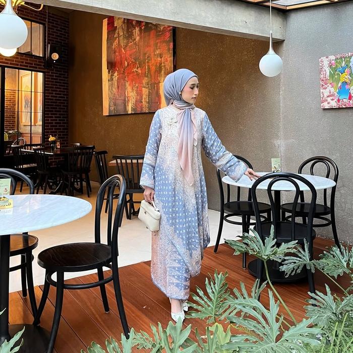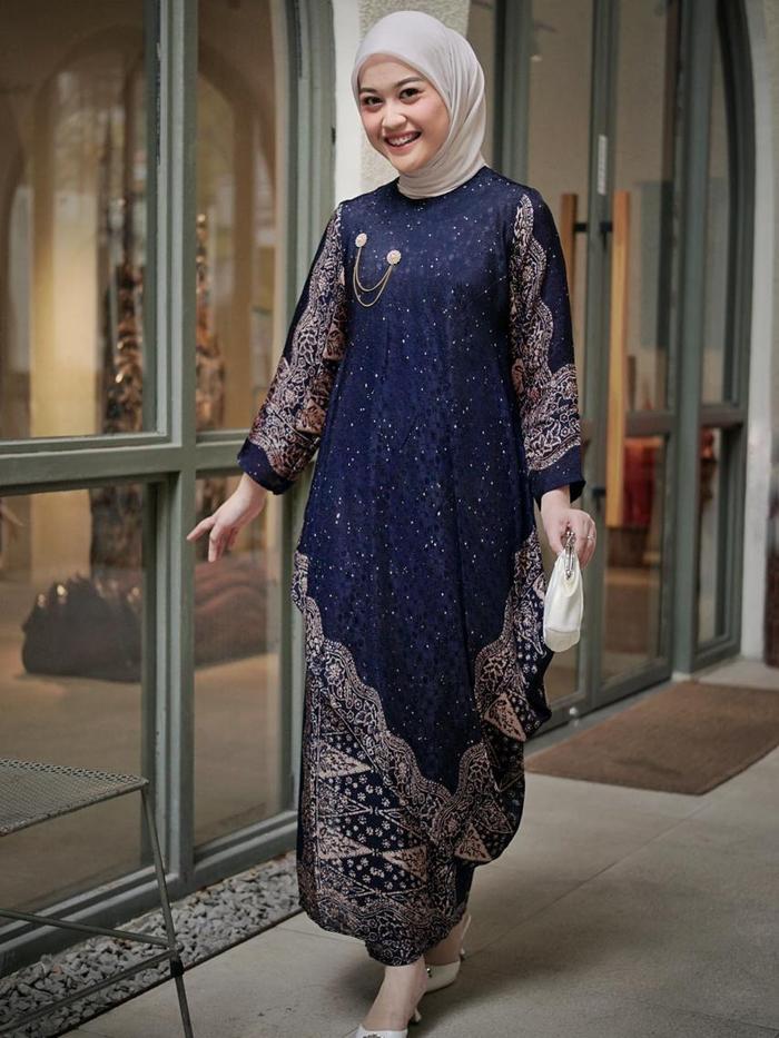 KINNAS - FREYA ONESET KURUNG MELAYU VISCOSE DAN ROK LILIR BATIK- SETELAN BATIK MEWAH MODERN - NAVY
