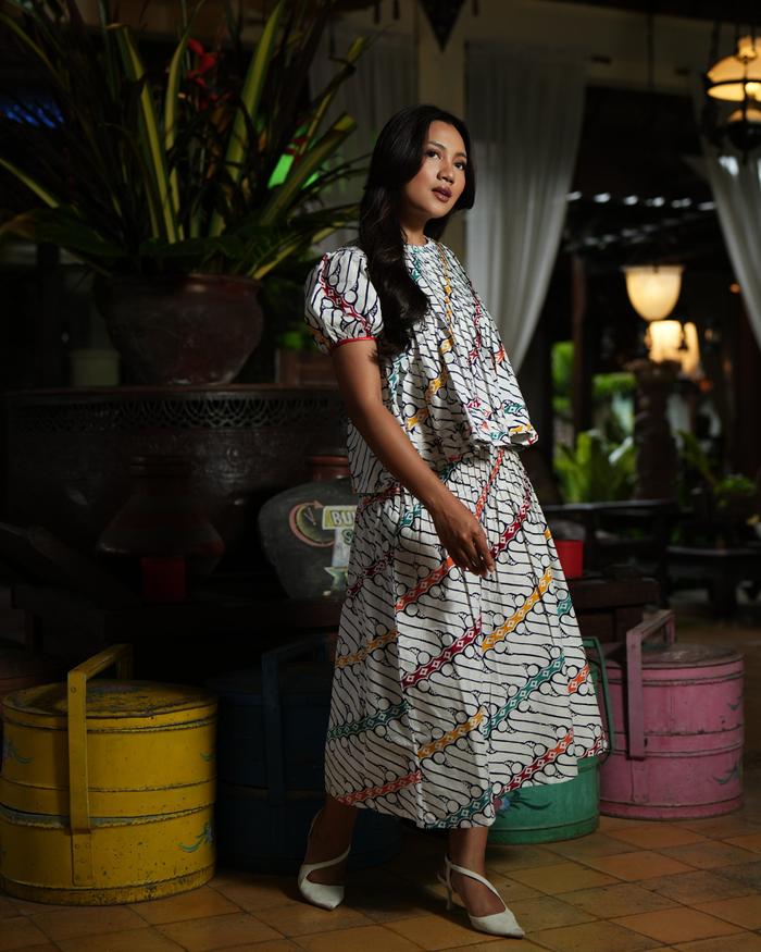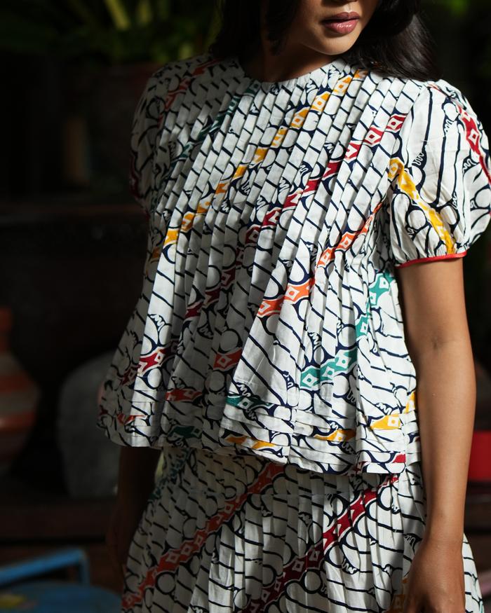 KANTI BATIK - RERENG ARUNIKA , ONE SET BATIK MODERN, BATIK KATUN MODERN , ROK BATIK , ATASAN BATIK PUTIH - S/M,