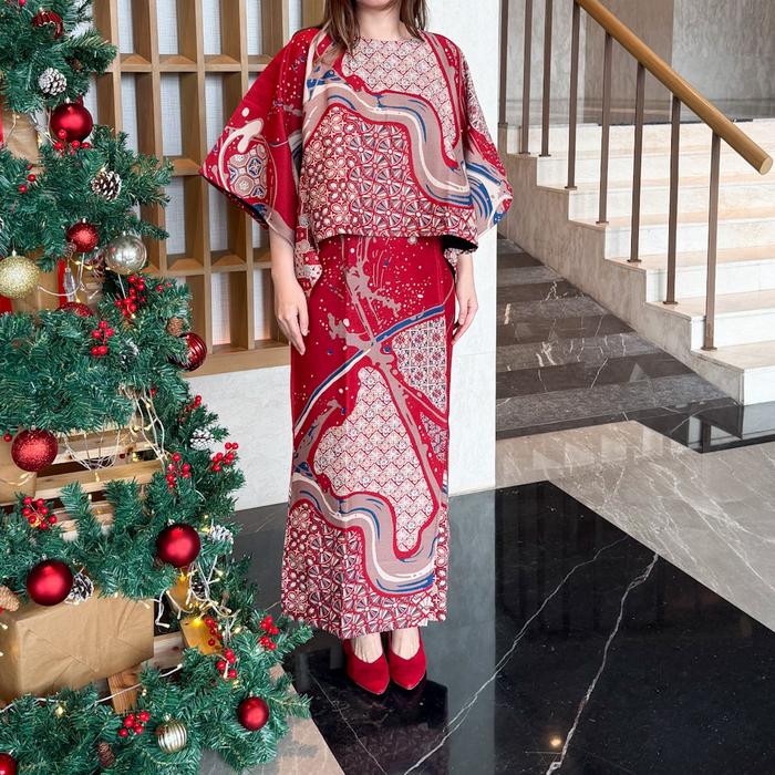 LAUSBOUTIQUE-SET GAMELAN-RED SERIES-ONESET BATIK NATAL - RED BINTANG, S/M