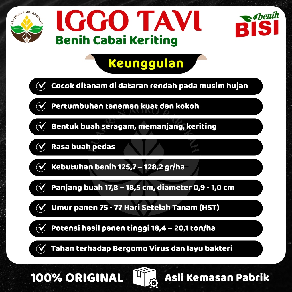 Benih Cabai IGGO TAVI F1 10 Gr - BISI Cap Kapal Terbang