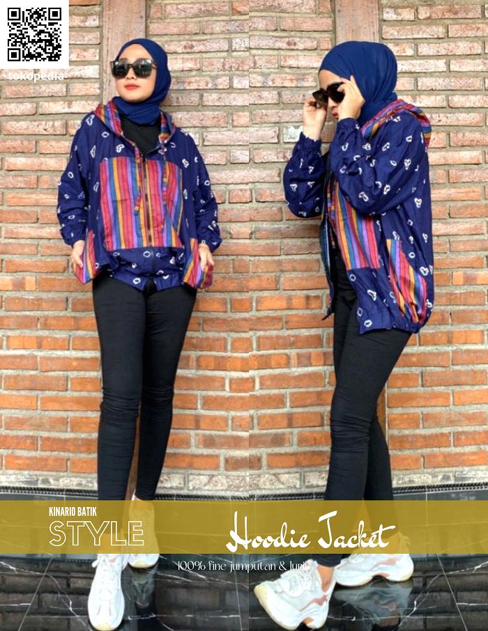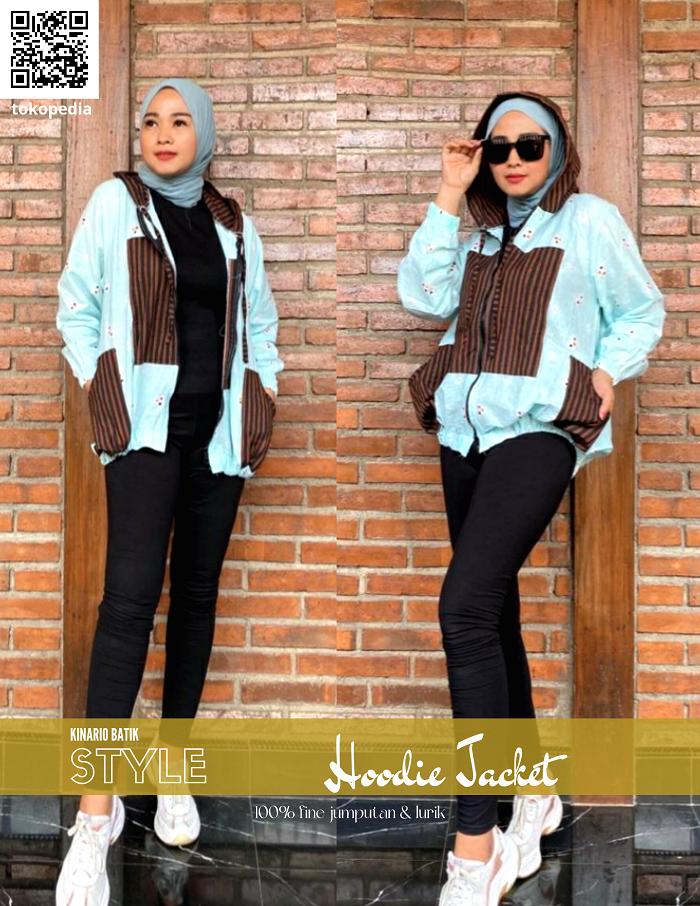 JAKET BATIK WANITA KINARIO HOODIE JAKET JUMPUTAN LURIK ALL SIZE - HIJAUPUPUS